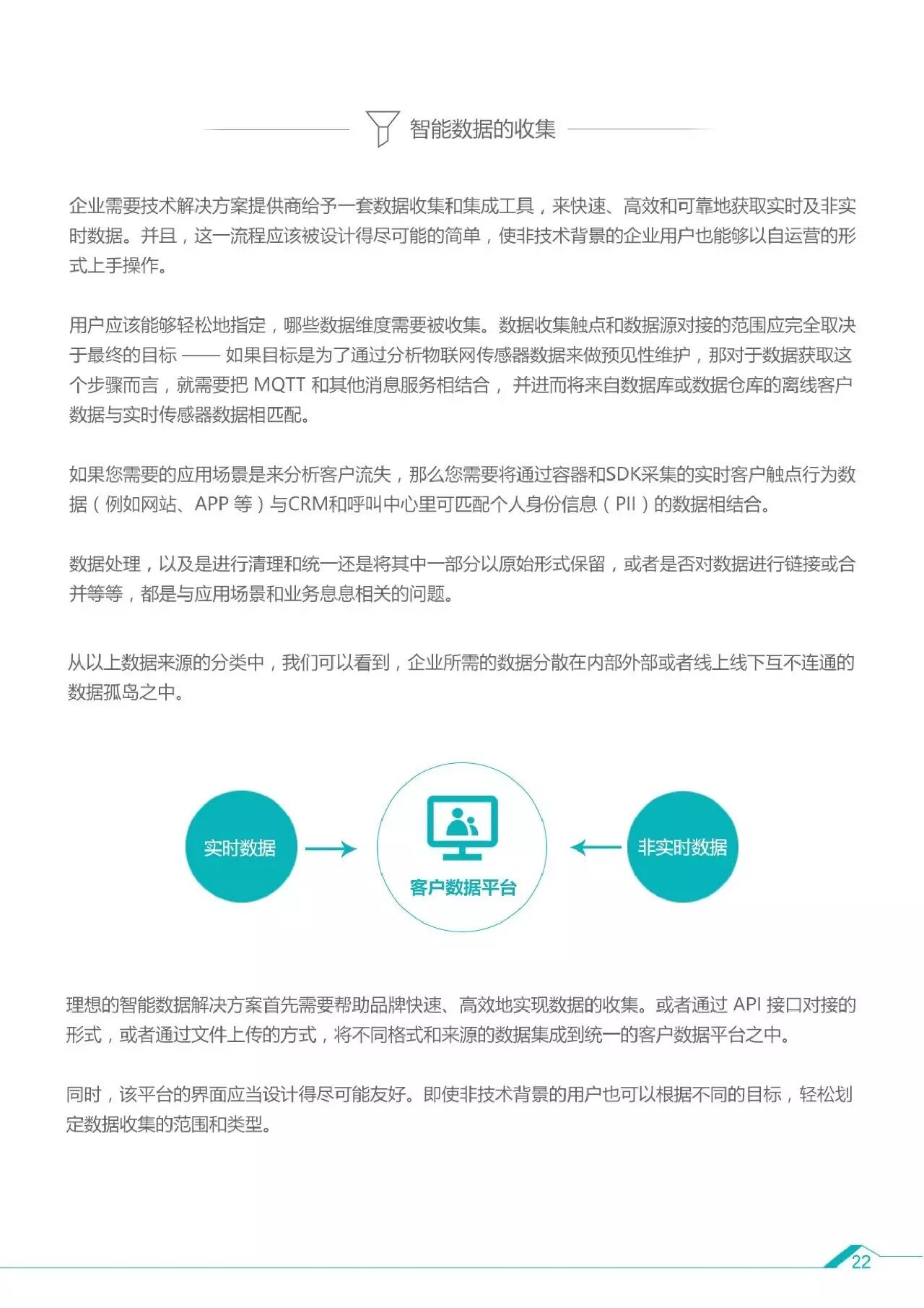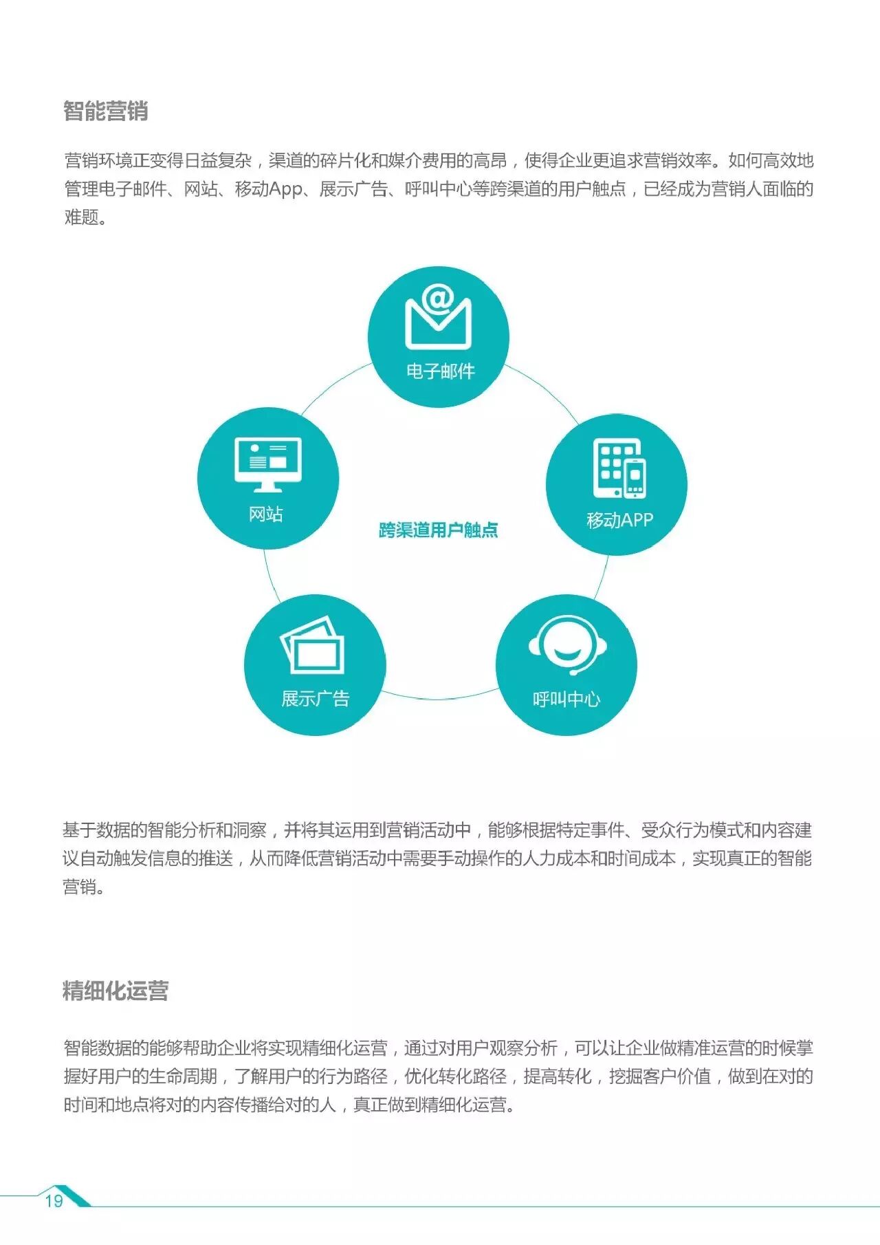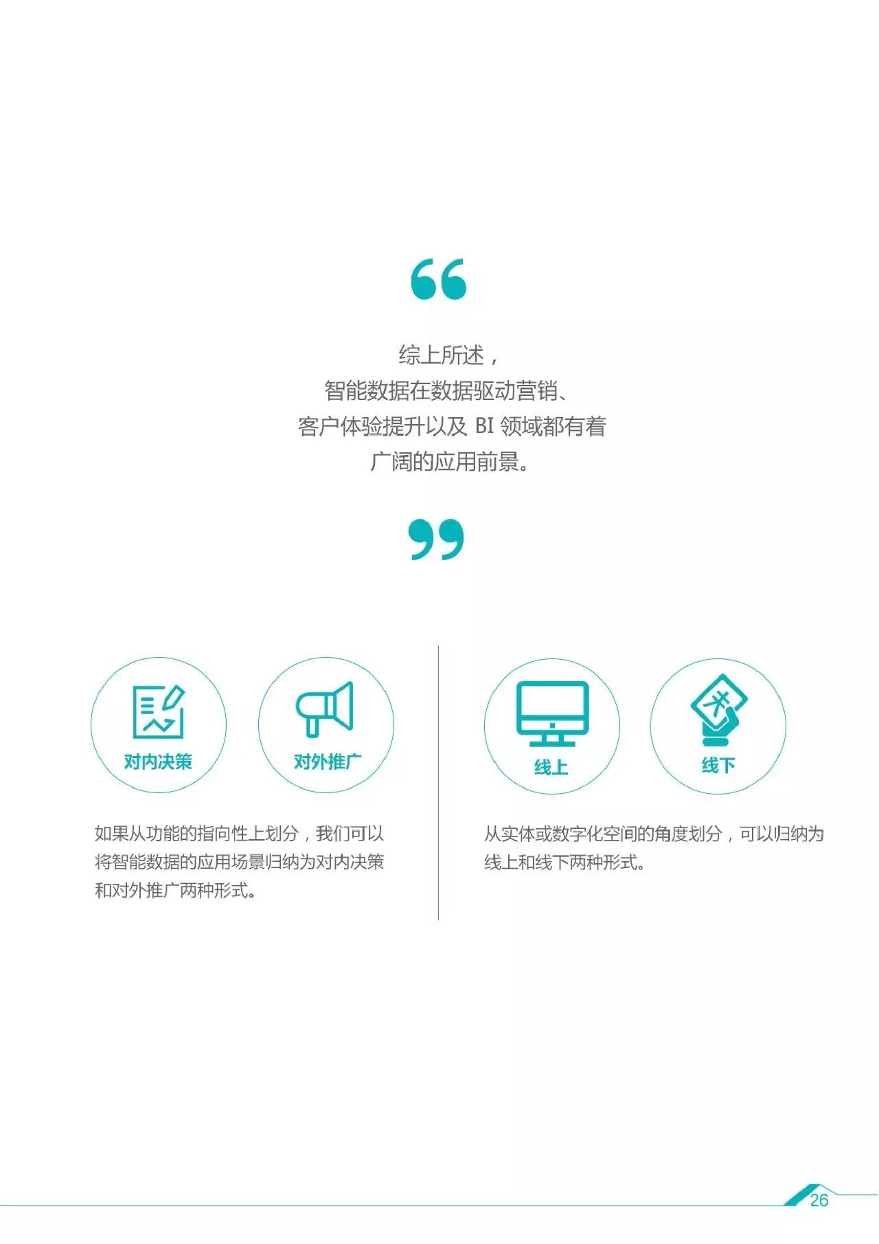 1、智能数据是能够解决实际问题的大数据的子集,随着数据与技术驱动营销的效用凸显,企业和代理商需要一站式的解决方案,从数据收集、分析到数据利用都能够统一管理,不仅用于广告投放和营销,更可以利用在商业决策乃至其他企业级需求。