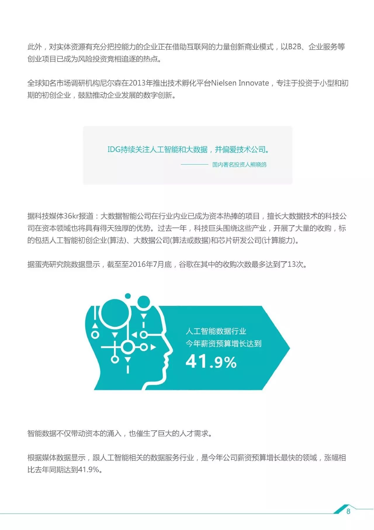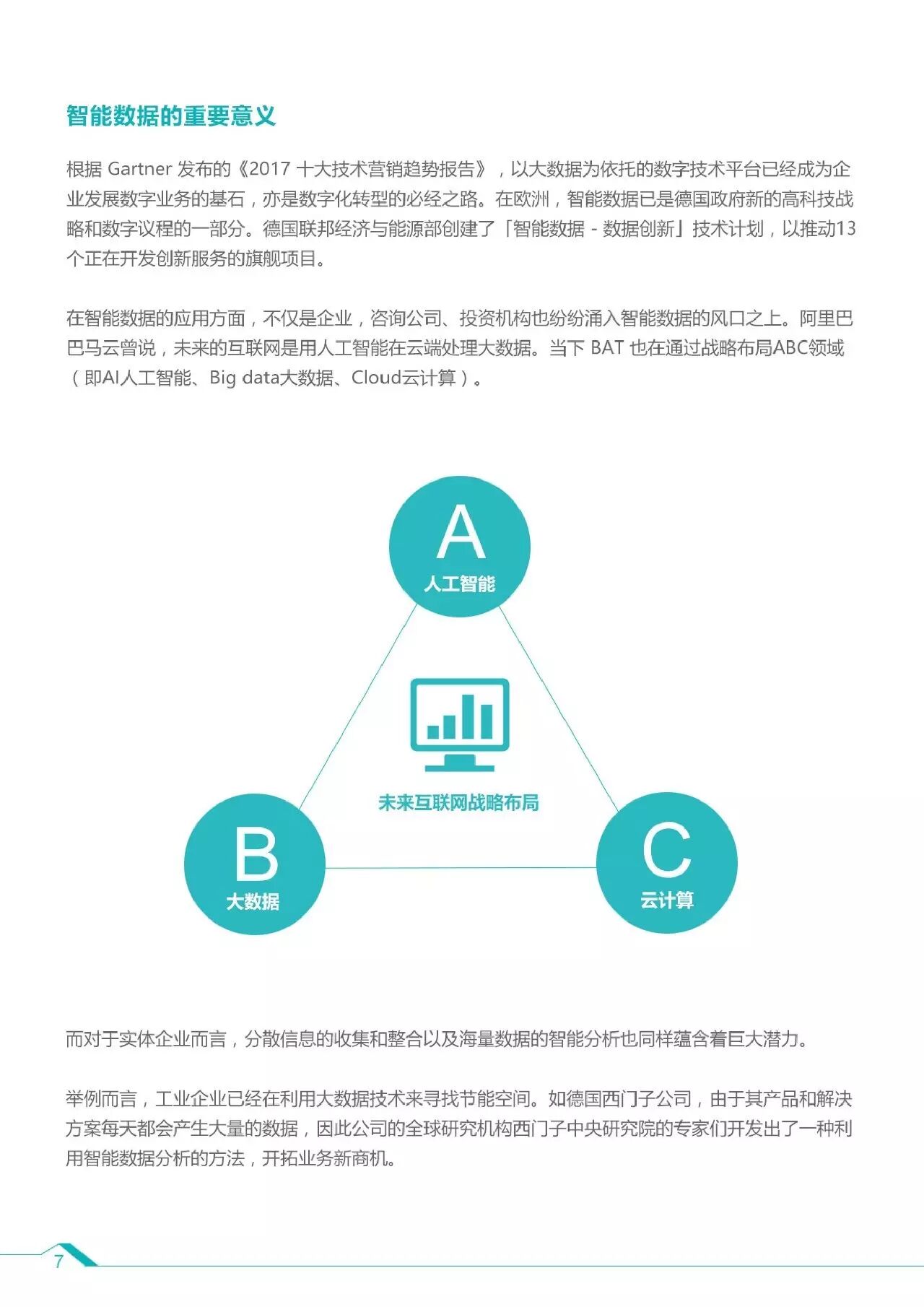 2、人工智能、大数据和云计算是未来互联网发展三大风口,对于实体企业而言,分散信息的收集和整合以及海量数据的智能分析同样潜力巨大。