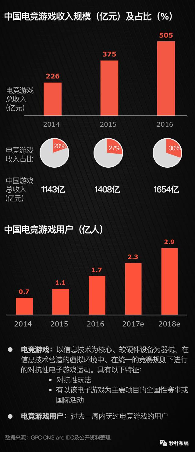 当我们聚焦于中国游戏市场收入数据可以发现,电竞游戏收入规模增长明显,且占比越来越高;电竞游戏用户规模也在不断扩大,未来用户规模潜力巨大。