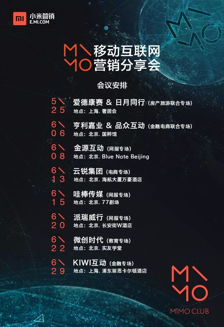 MIMO移动互联网营销分享会还将陆续举办其他行业专场活动,敬请期待: