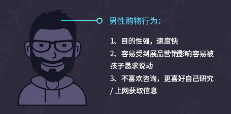原因:男性购物目的性比较强,所以不太会闲逛,别期望男性用户能在你的店里浏览太多,如果你吸引他的入口越直接,命中率会越高。