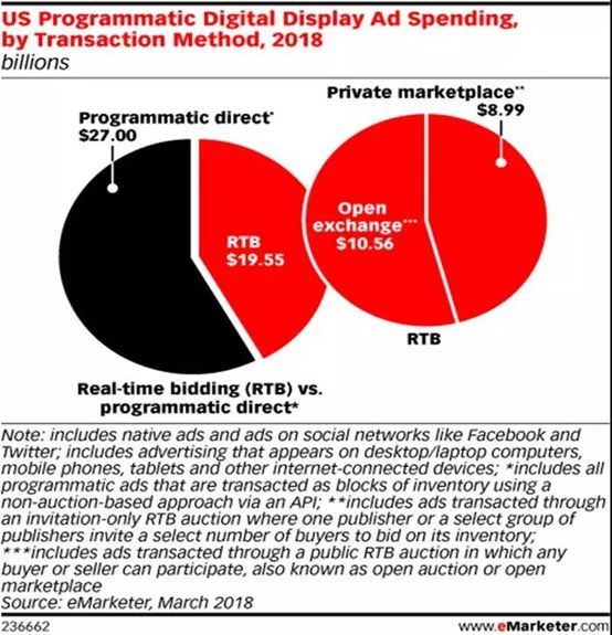 根据eMarketer近期有关程序化广告的调查,2018年程序化广告规模将会超过460亿美金,比去年增加近100亿美金。
