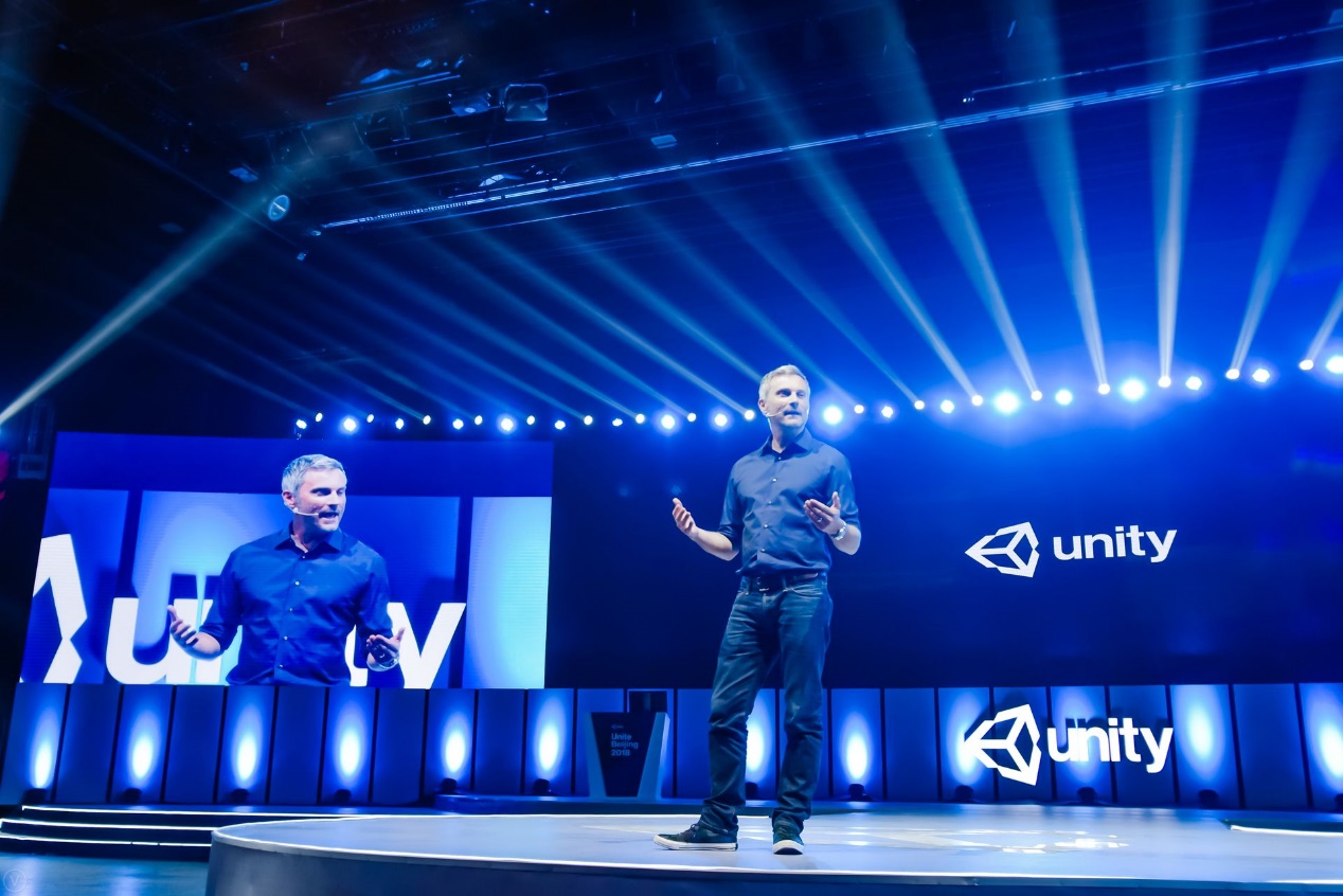 Keynote开场嘉宾Unity CMO Clive Downie,表示创造者的存在让世界变得更加美好,Unity研发团队秉承着开发大众化,解决疑难问题与助力开发者获得成功的三大宗旨,不断通过引擎技术和功能的更新迭代,让开发者的创意得到充分发挥。Clive为大家分享了Unity最新的市场数据:在移动端游戏领域,全球有50%的移动游戏适用Unity开发,Made with Unity游戏运行于60亿台独立设备上,而这些游戏的下载量达到了240亿。在VR内容开发方面,69%的Oculus Rift平台VR内容、74%的HTC Vive平台VR内容、87%的Gear VR平台内容和91%的HoloLens平台内容均使用Unity进行开发。目前,超过25家全球知名平台与Unity达成合作,Unity开发者可以轻松地将游戏与应用部署到各大平台。