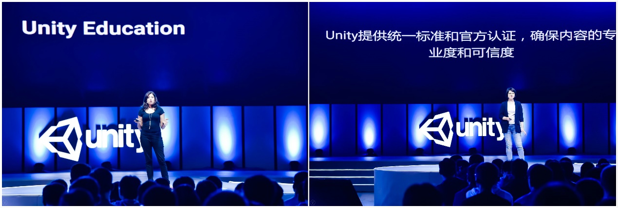 在引擎技术和专业服务更新换代的同时,Unity注重教育领域的发展,着眼下一代创新型人才的培养。Unity全球教育总监Anuja Dharkar为大家介绍了Unity全球教育认证体系,开发者可通过多种官方渠道,如线上交互式教程与线下官方培训等,全面掌握Unity技能并获得官方认证。Unity大中华区高级运营总监Beeling Chua,着重介绍了Unity大中华区的教育战略,包括覆盖Unity用户全生命周期的分阶段教育体系,满足各类开发需求的课程内容和培训,以及针对各大高校全新打造的“灯塔计划”等。