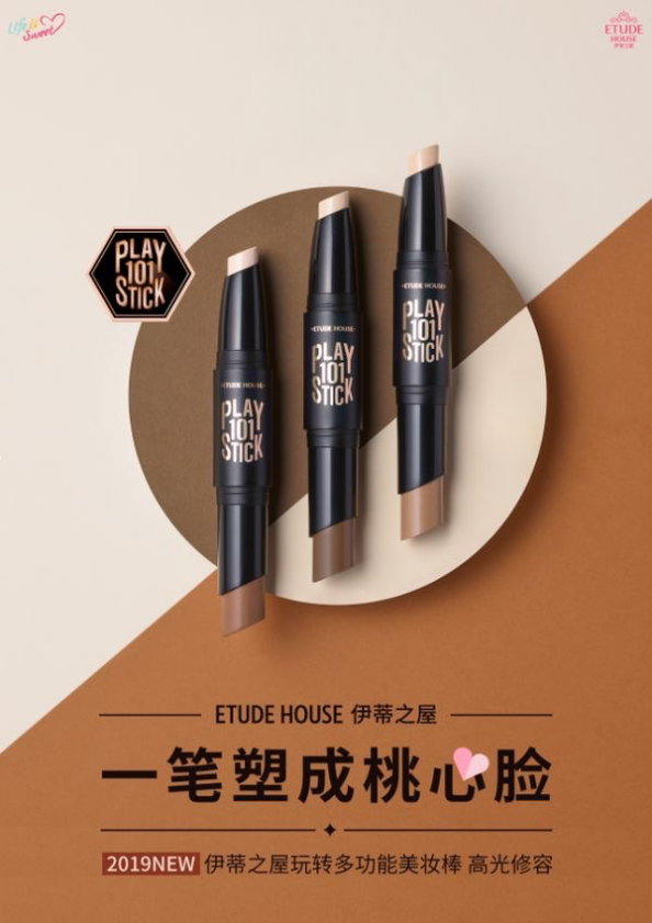 其次,通过全脸变小的用户诉求,时趣专家团队与社交热门动作“比心”手势相结合,联想到了修容后的脸型是很类似“桃心”。最终确定了修容产品以“一笔塑出桃心脸”营销新概念,帮助新品快速确定差异,突围“V”字脸营销。