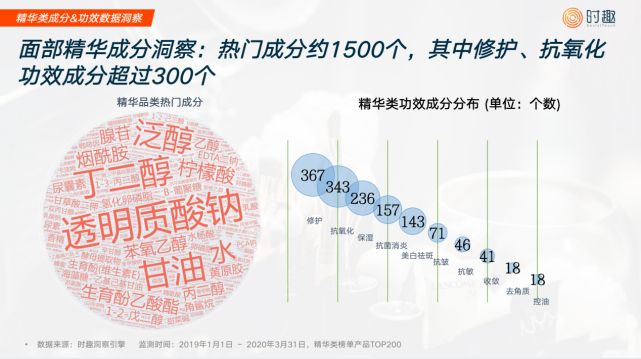 在时趣洞察引擎的帮助下,如今通过机器学习也能为美妆产品打上1500多个细分成分标签,这些标签除了热门的成分外,包含非常多冷门的成分,这些成分正如专家无法判断的小众电影题材一样重要。