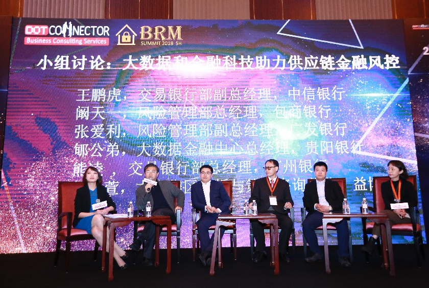 上午场的最后一个活动由小组讨论:大数据和金融科技助力供应链金融风控结束,来自中信银行的交易银行部副总经理王鹏虎、包商银行的风险管理部总经理阚天一、广发银行的风险管理部副总经理张爱利、贵阳银行的大数据金融中心总经理郇公弟、广州银行的交易银行部总经理熊凌、益博睿的大中华区分析与策略咨询总监赵于萱一同进行。