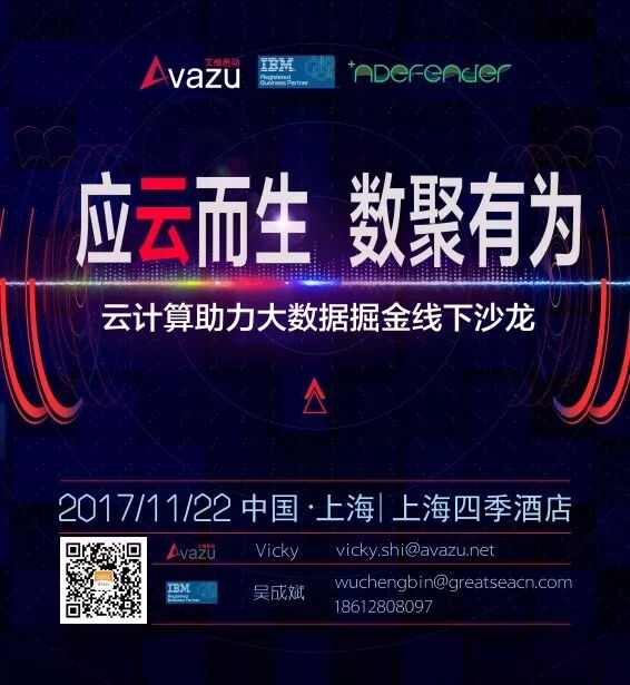 数据时代,如何将大数据变现?如何保障数据的安全?Avazu携手IBM于11月22日下午2时,在上海四季酒店,为您全面讲解Avazu DSP与nDefender以及作为支撑的IBM云平台与大数据分析在泛娱媒体行业的云应用与高价值。