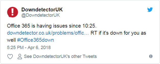 官方的Office 365状态Twitter帐户在格林尼治标准时间10:18证实,微软正在调查亚太地区出现的“访问问题”,不过到10:25,这次故障还席卷了欧洲。