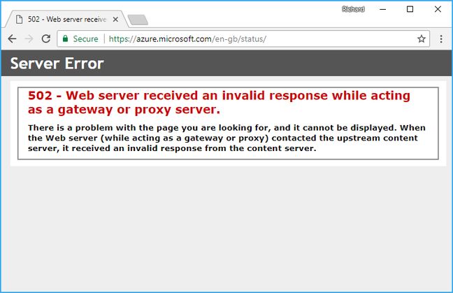 假设忧心忡忡的客户果真可以进入到Azure状态页面。截至本文撰稿时,Azure状态页面同样出现了周五的故障。